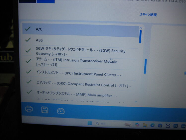 診断機(テスター)にてエンジンや各制御ユニットのフォルトメモリをチェックし、異常コードが入っていないことを確認しました。