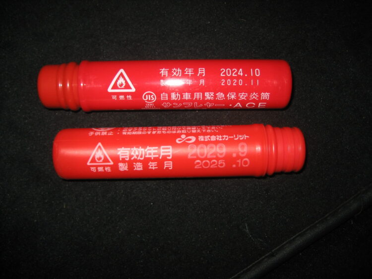 発煙筒の有効期限が切れていたため、車検に適合する新品へ交換しました。