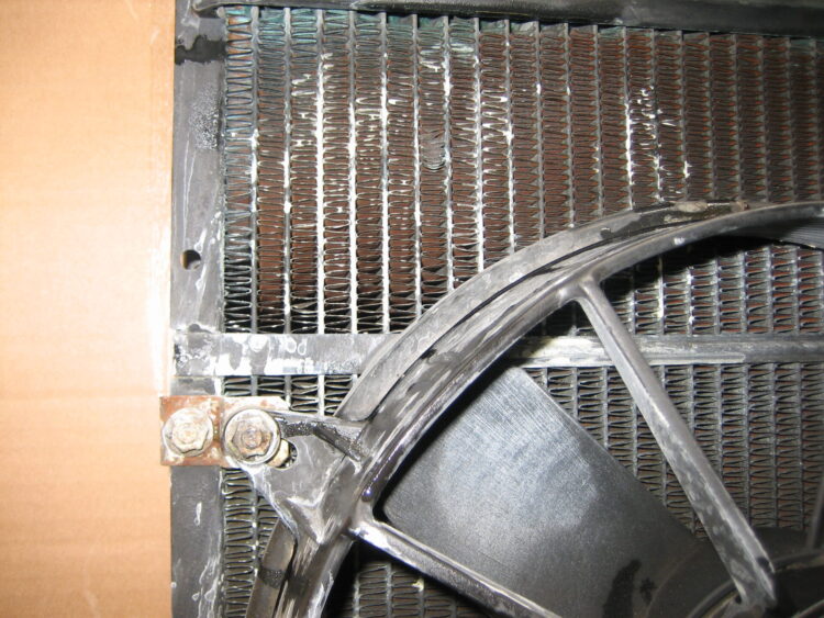 - 右側ラジエーター本体より滲み漏れを確認