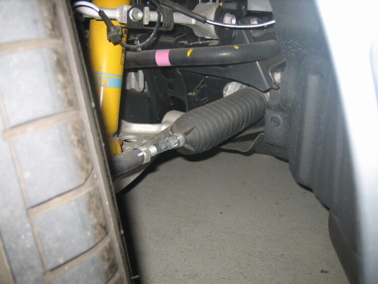 直進時のハンドルセンターが自然な位置になるよう、タイロッドエンドで調整しました。違和感の軽減だけでなく、運転のしやすさ・疲労低減にもつながります。
