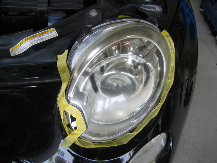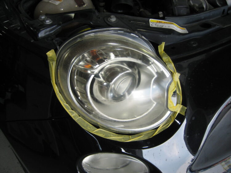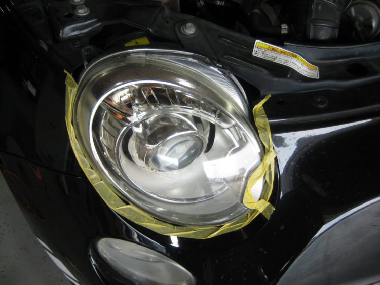 ヘッドライト左右磨き
