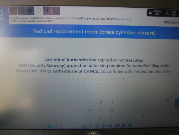 専用テスターを使用して、電動パーキングブレーキを解除します。これにより、リアブレーキキャリパーのピストンを格納することができます。