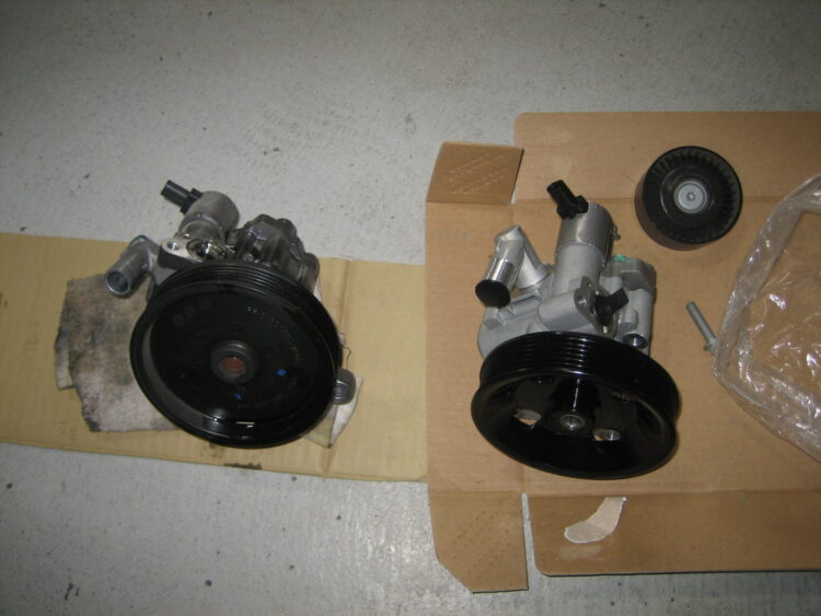 新品パワーステアリングポンプへ交換