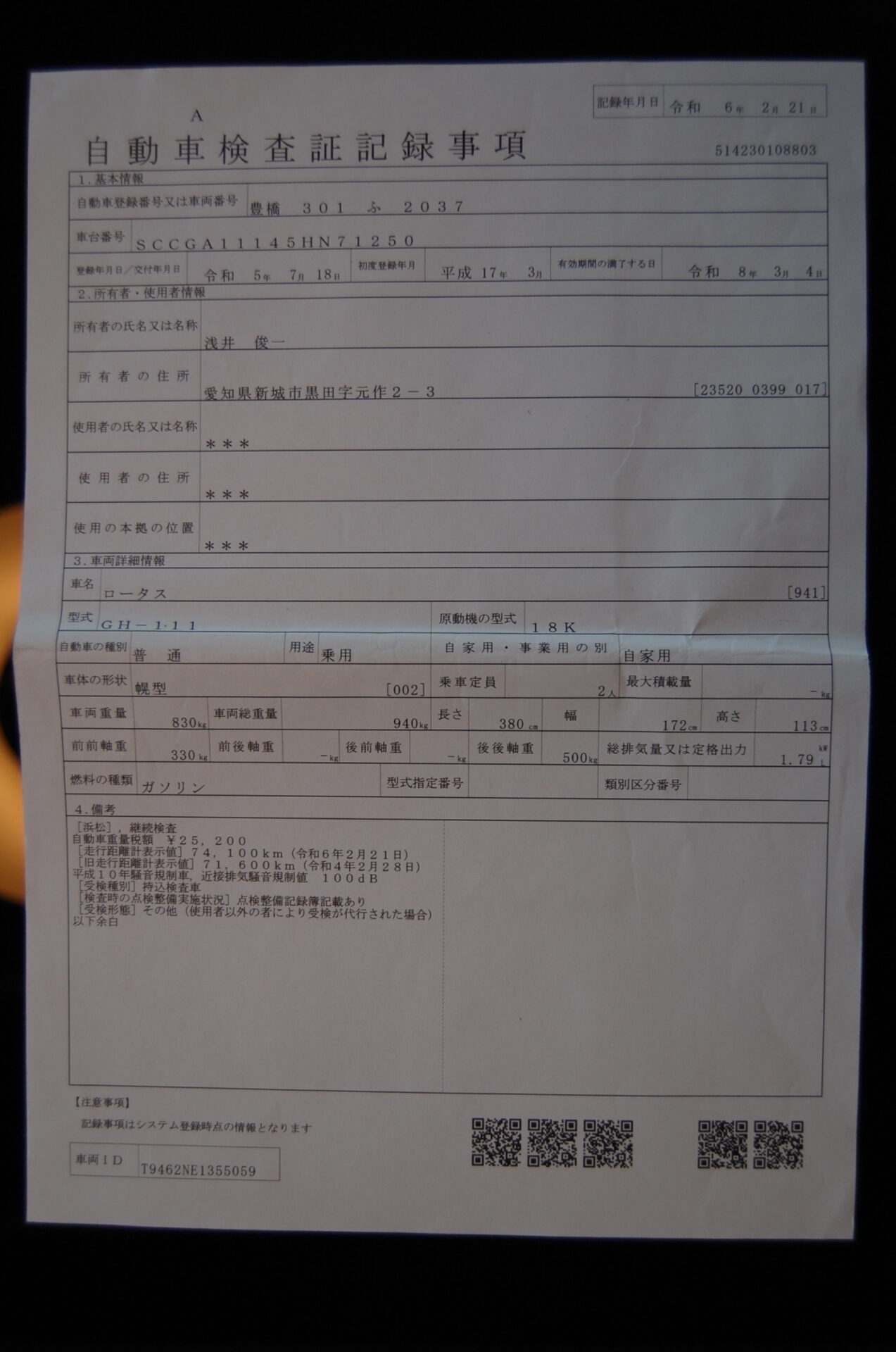 車検有無: